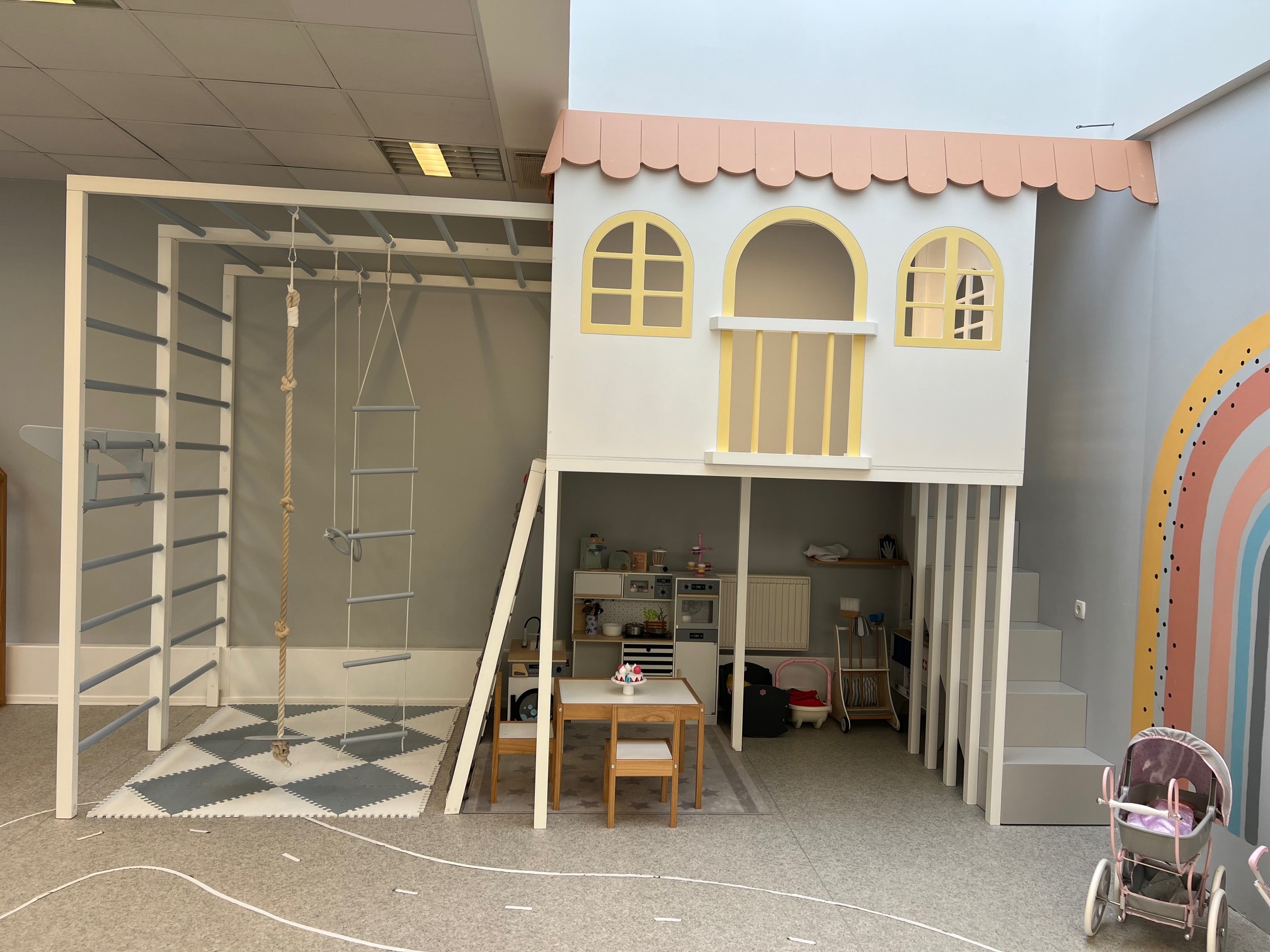 Mängutoas on ka privaatne mähkimisnurk beebidele ja mugav tool imetavale emale.